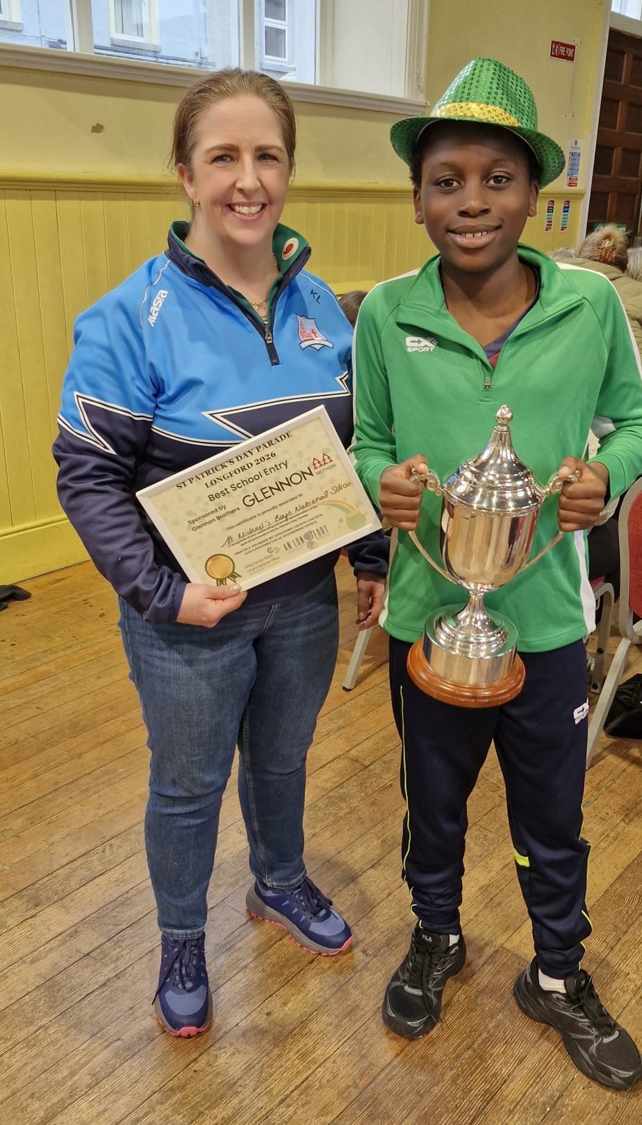 The boys were excited for the parade. Cristín came to help out on the day. Thankfully the weather stayed dry. There was a great crowd out to see the parade. The boys had a great time walking in the parade and to top it all off, we were announced the winners of the ‘Best School’ category at the prize giving ceremony that evening.